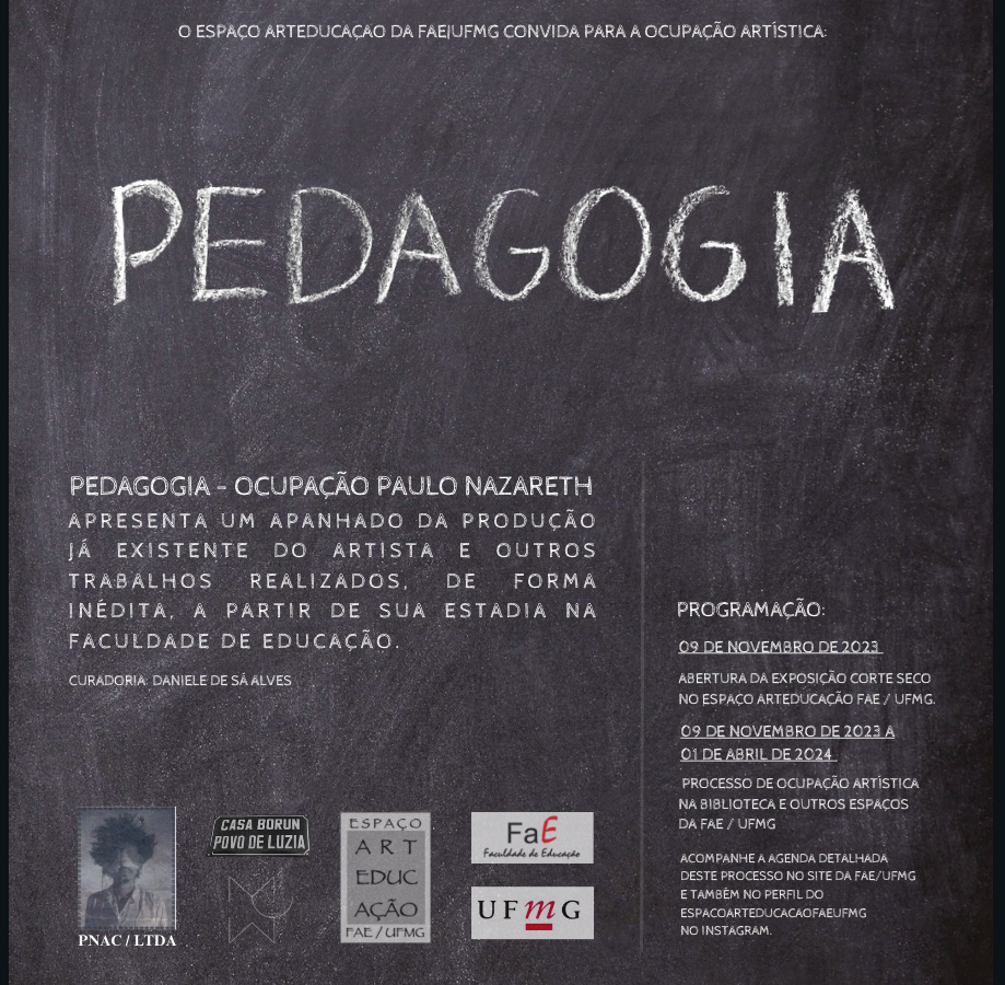 A Faculdade de Educação da UFMG recebe, a partir do dia 9 de novembro de 2023, o artista Paulo Nazareth, que reunirá um apanhado da sua produção já existente e outros trabalhos feitos a partir de sua estadia na instituição. Intitulado “PEDAGOGIA”, o projeto consiste em uma ocupação do artista na FaE, no período de 09 de novembro de 2023 a 01 de abril de 2024, a coordenação e a curadoria do processo são da professora Daniele de Sá Alves.