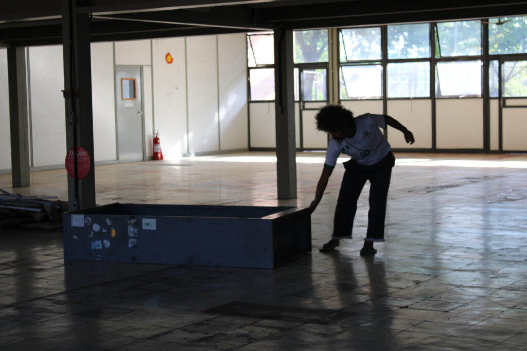 Movimentos da ocupação artística da biblioteca da FaE pelo artista Paulo Nazareh. Fotografia de Alice Castro. (novembro de 2023)