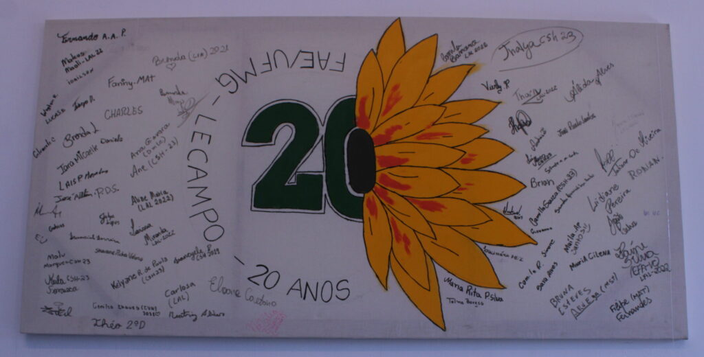 Em comemoração aos 20 anos da Licenciatura em Educação do Campo da FaE UFMG, o Espaço de Poéticas recebe uma exposição que celebra as trajetórias, lutas e conquistas do curso na construção de uma educação inclusiva e transformadora. A mostra reflete os princípios que orientam o curso de Licenciatura em Educação do Campo (LECAMPO), criado com o objetivo de formar professores para atuar em escolas rurais e urbanas, nos anos finais do Ensino Fundamental e no Ensino Médio. Mais do que uma formação técnica, o curso valoriza os saberes, práticas e modos de vida dos povos do campo, articulando ensino, pesquisa e extensão com as pautas da agroecologia, da agricultura familiar, dos movimentos sociais de luta pela terra e das Escolas Família Agrícola.