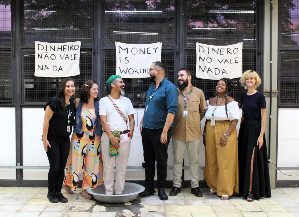 Processo de troca e formação: artista, produção, monitores e curadoria da Ocupação Artística Paulo Nazareth. Maio de 2024. Imagem: Equipe do Espaço Arteducação.