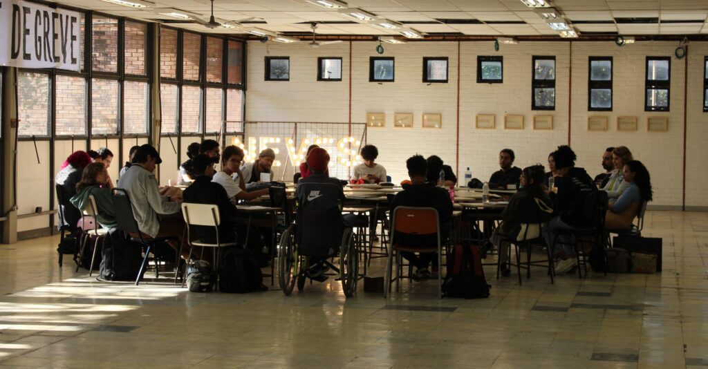Registro do Encontro de Formação com Glória Jové (Espanha) e Antonio Silva (UEFS) na Ocupação Artística Paulo Nazareth – FaE/UFMG. Maio de 2024. Imagem: Equipe do Espaço Arteducação.
