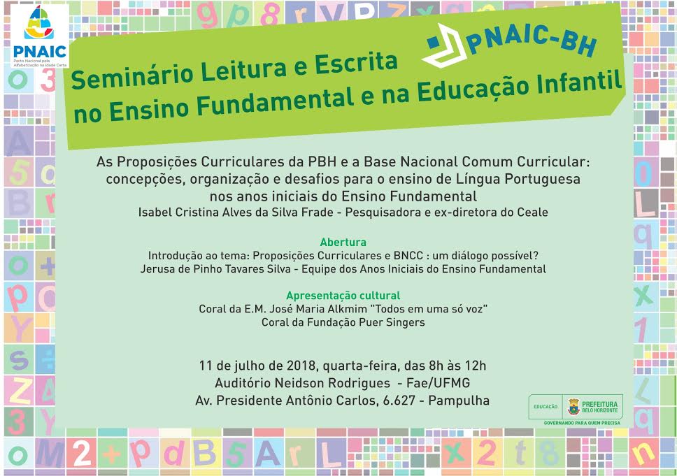 Seminário Leitura e Escrita no Ensino Fundamental e na Educação Infantil PNAIC/BH (11 de Julho – 08 h)